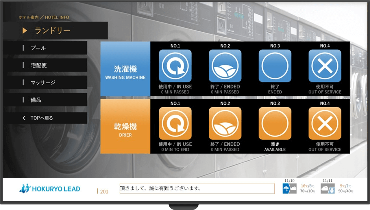 ・スマートフォンおよび客室テレビへのステータス表示
