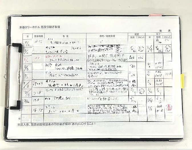 そのような中で、例えばフロントやメンテナンス業者のスタッフが夜間と日中で入れ替わる際に、引継ぎが十分にできておらず、交代したスタッフが発生した事象や進捗を把握できていないこともありました。